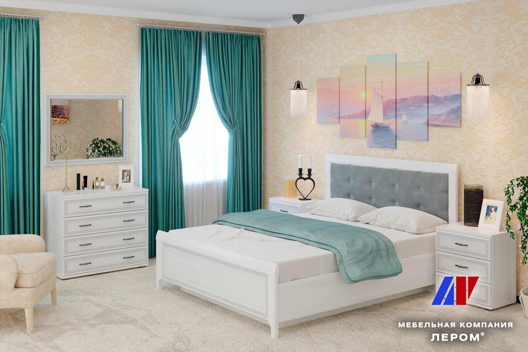 Спальня Карина - композиция 5 Снежный Ясень+велюр