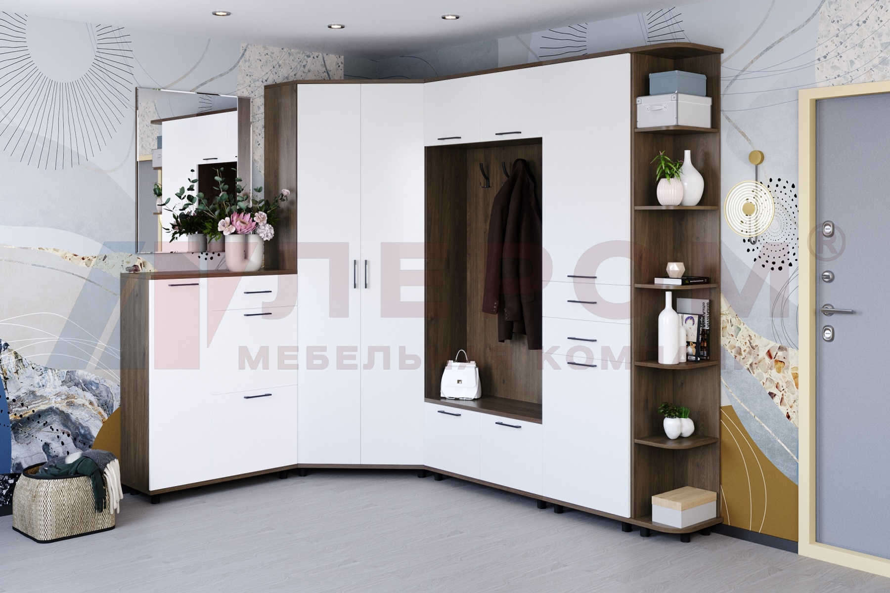 Прихожая Грейс-композиция 1 корпус Гикори Джексон темный, фасад Белый Бриллиант Глянцевый
