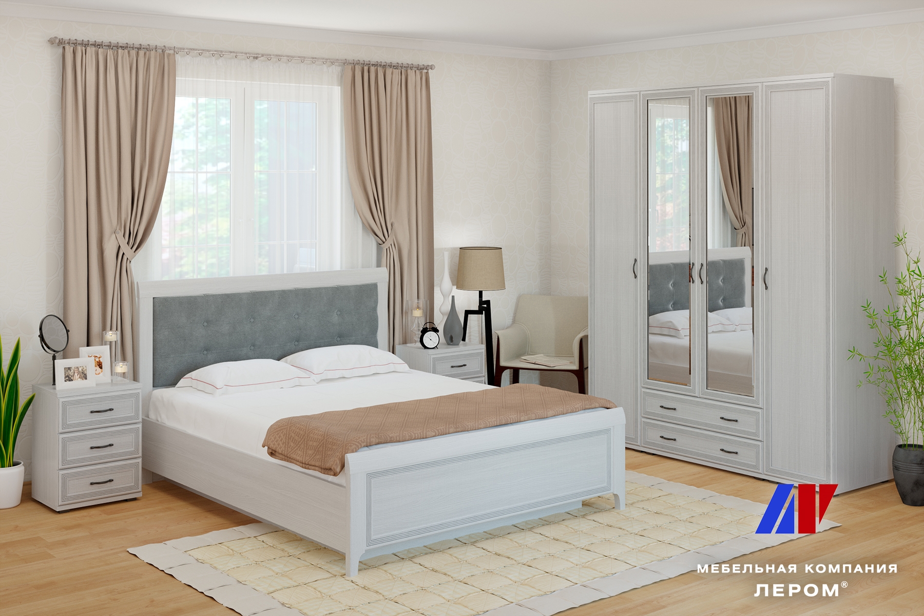 Спальня Карина - композиция 4 Снежный Ясень+велюр